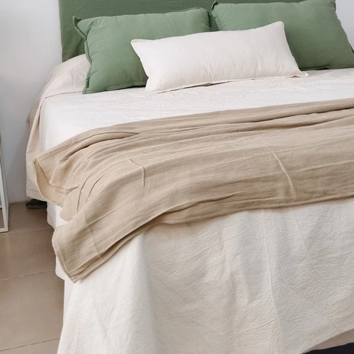 Está confeccionada en 100% algodón, con un estilo rústico que aporta un aire relajado y natural a cualquier ambiente. Liviana y versátil, es perfecta para usar como pie de cama o como manta decorativa de sillón.