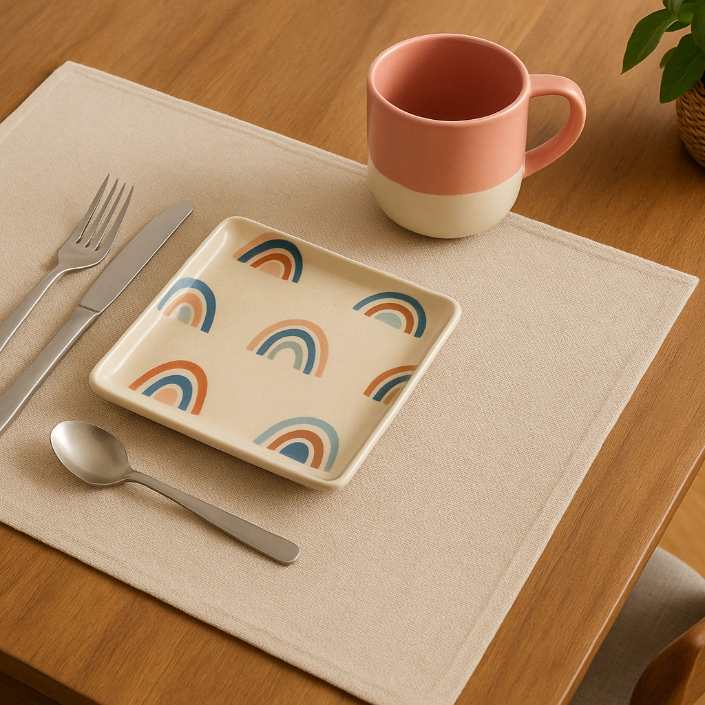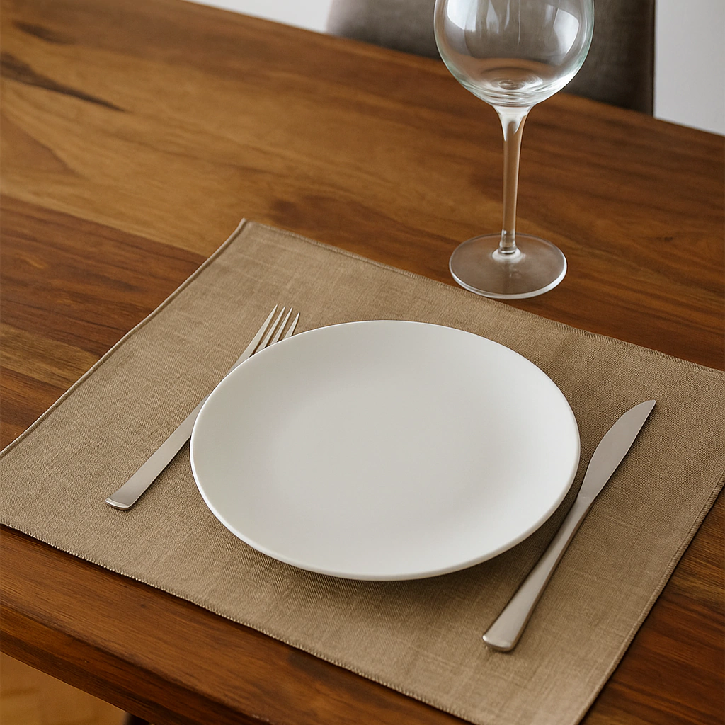Nuestros manteles individuales simil lino impermeables combinan estilo natural y funcionalidad diaria. Su textura de lino con tratamiento anti-absorbente repele líquidos y facilita la limpieza, manteniendo tu mesa impecable y elegante en todo momento.