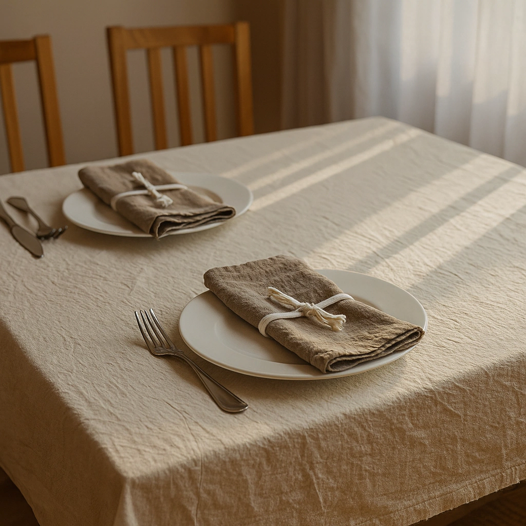 Lavar con agua fría o tibia, planchar a temperatura media y combinar con manteles lisos o estampados.